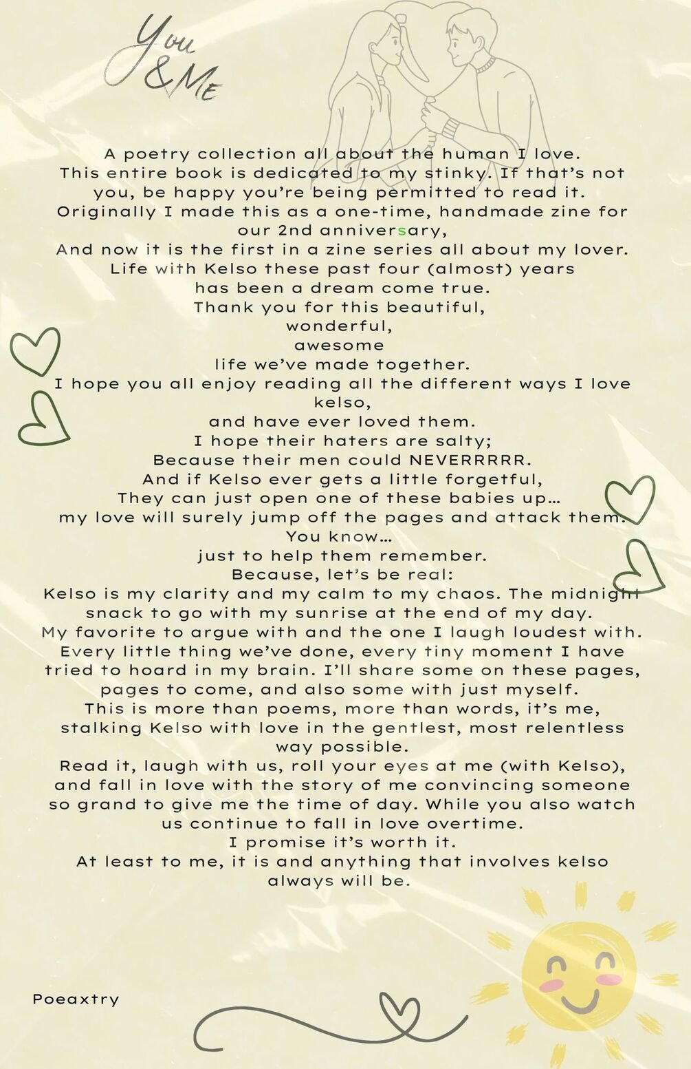 Originally handmade as a personal gift for my partner nearly two years ago, Kelso explores the geography of new love: the nervous excitement of early dates, the comfort of growing familiarity, the vulnerability of letting someone see you fully. These poems are snapshots of a relationship taking root: honest, unfiltered, and deeply felt.