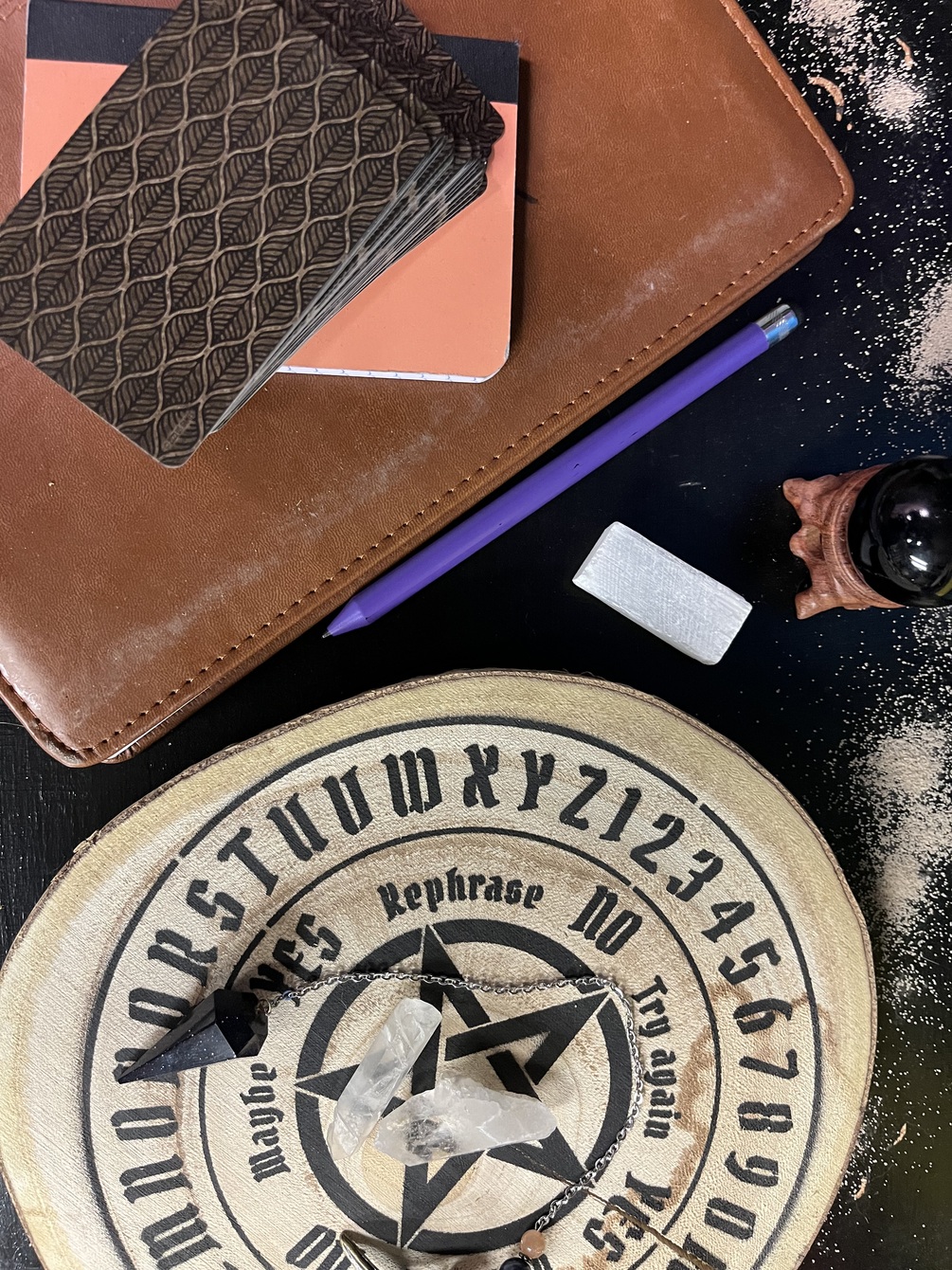 I occasionally photograph or record portions of my tarot or pendulum readings — such as card spreads, altar setups, pendulum boards, or visuals from virtual sessions — for my personal archive, portfolio, or potential use in social media, website visuals, or project documentation.